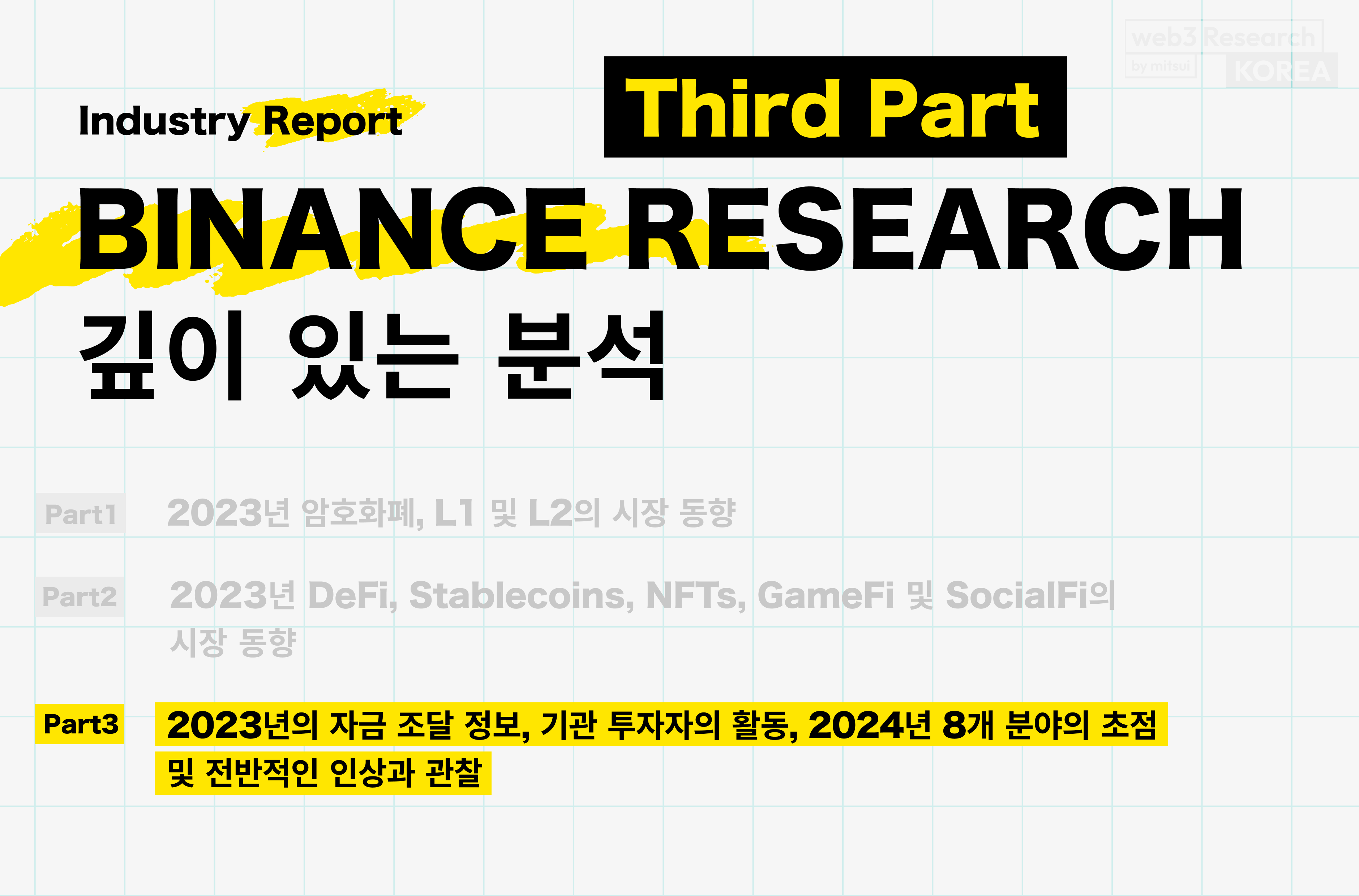 어제부터 이어지는 바이낸스 리서치가 발표한 "2023년 전년도 및 2024년 주요 테마" 보고서를 설명하겠습니다.