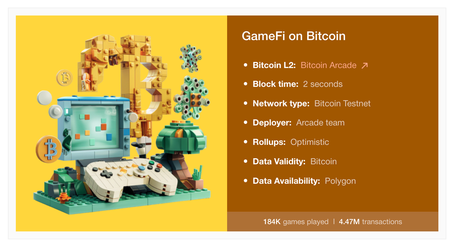 개요: BVM을 기반으로 구축된 게임파이 전문 체인. 비트코인 상에서 최초의 완전 온체인 게임 블록체인.