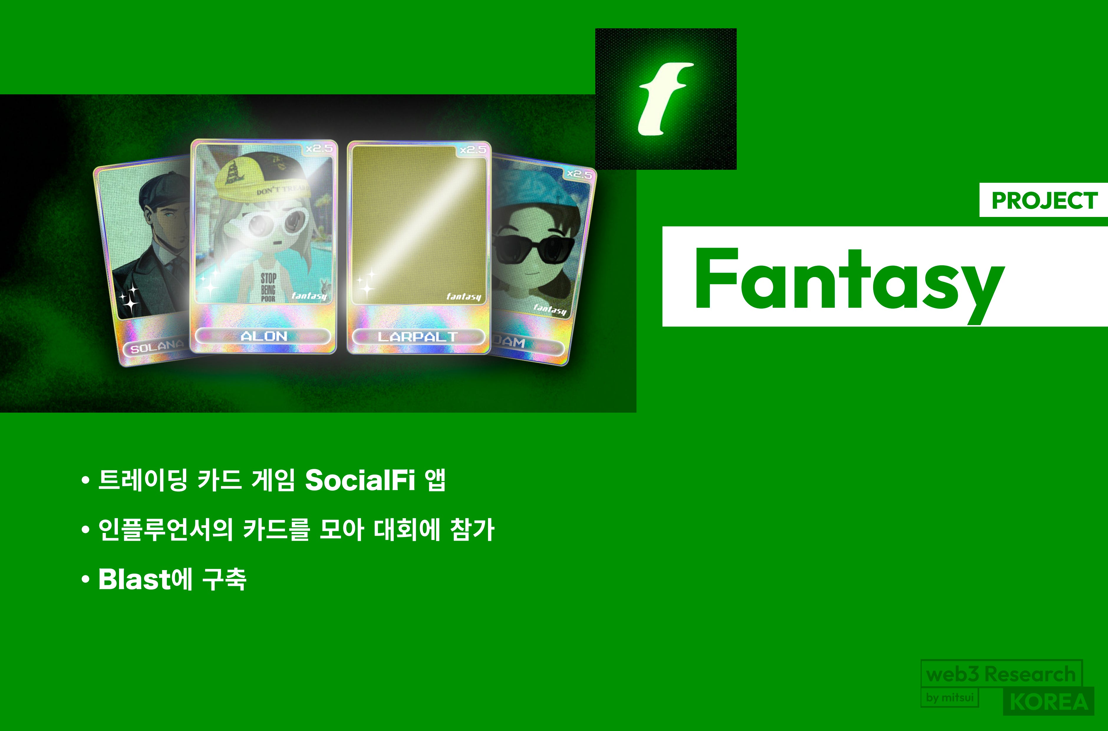 'Fantasy ' 는 Blast를 기반으로 구축된트레이딩 카드 게임과 SocialFi가 융합된앱이다.