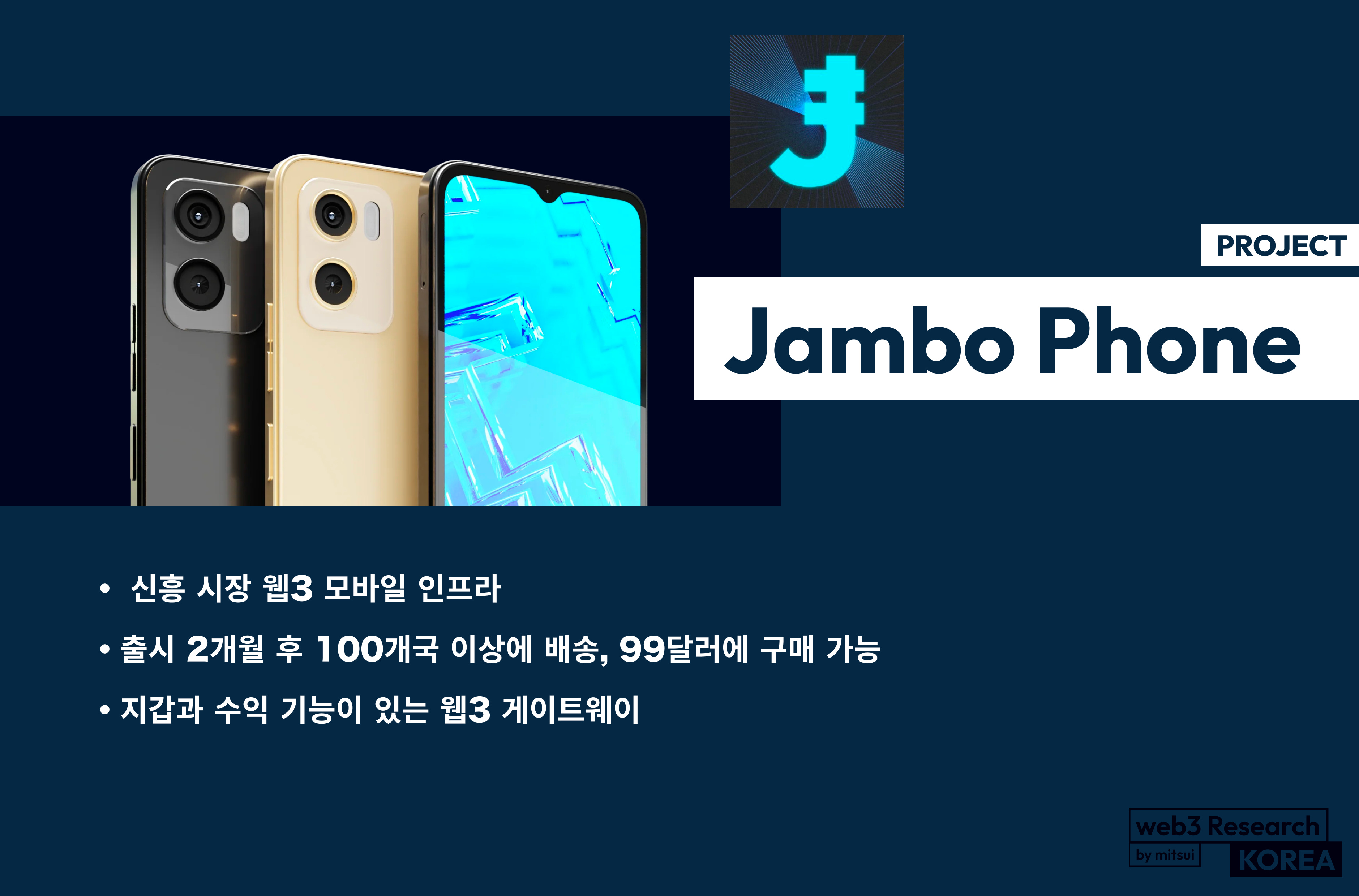 【Jambo Phone】 신흥 시장 웹3 모바일 인프라 / 출시 2개월 후 100개국 이상에 배송, 99달러에 구매 가능 / 지갑과 수익 기능이 있는 웹3 게이트웨이 / @JamboTechnology