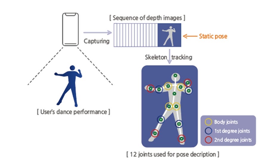 앞서 설명한 바와 같이 스마트폰 카메라를 통해 사용자의 움직임을 인식하고, 독자적인 AI 기술을 통해 움직임을 실시간으로 인식한다. 온라인에 반영된 데이터를 바탕으로 올바른 움직임에 대한 피드백과 운동한 것에 대한 보상으로 토큰과 포인트를 지급한다.