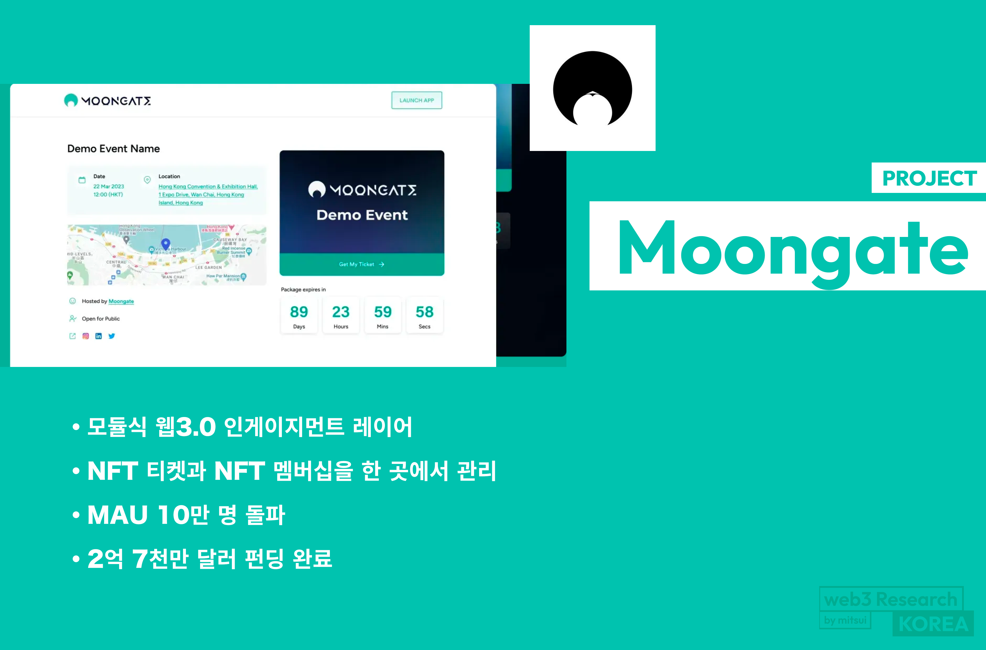 【Moongate】모듈식 웹3.0 인게이지먼트 레이어 / NFT 티켓과 NFT 멤버십을 한 곳에서 관리 / MAU 10만 명 돌파 / 2억 7천만 달러 펀딩 완료 / @Moongate