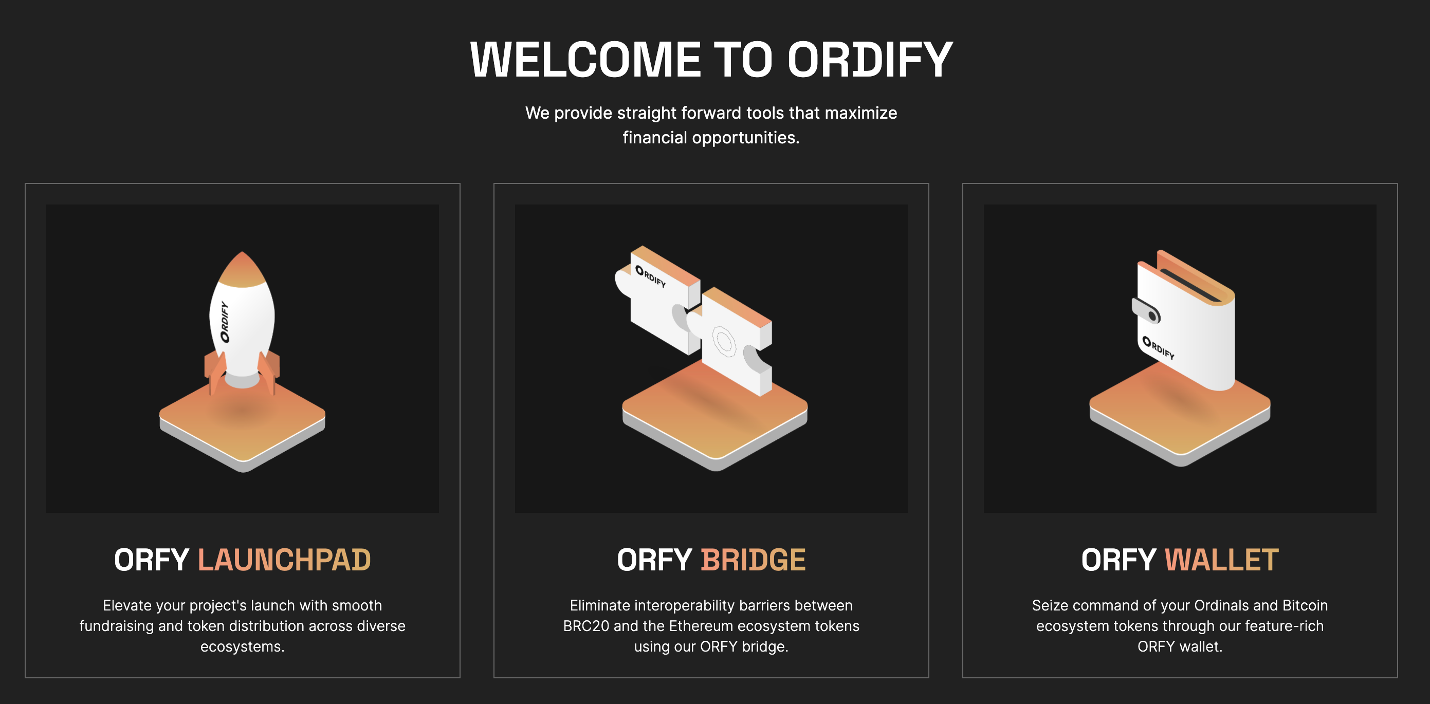 "Ordify"는 투자 경험을 향상시키기 위해 설계된 일련의 제품을 제공합니다. 주된 목표는 비트코인 생태계의 성장을 촉진하는 것이며, 현재 Launchpad, Bridge, Wallet의 세 가지 서비스를 제공하고 있습니다.