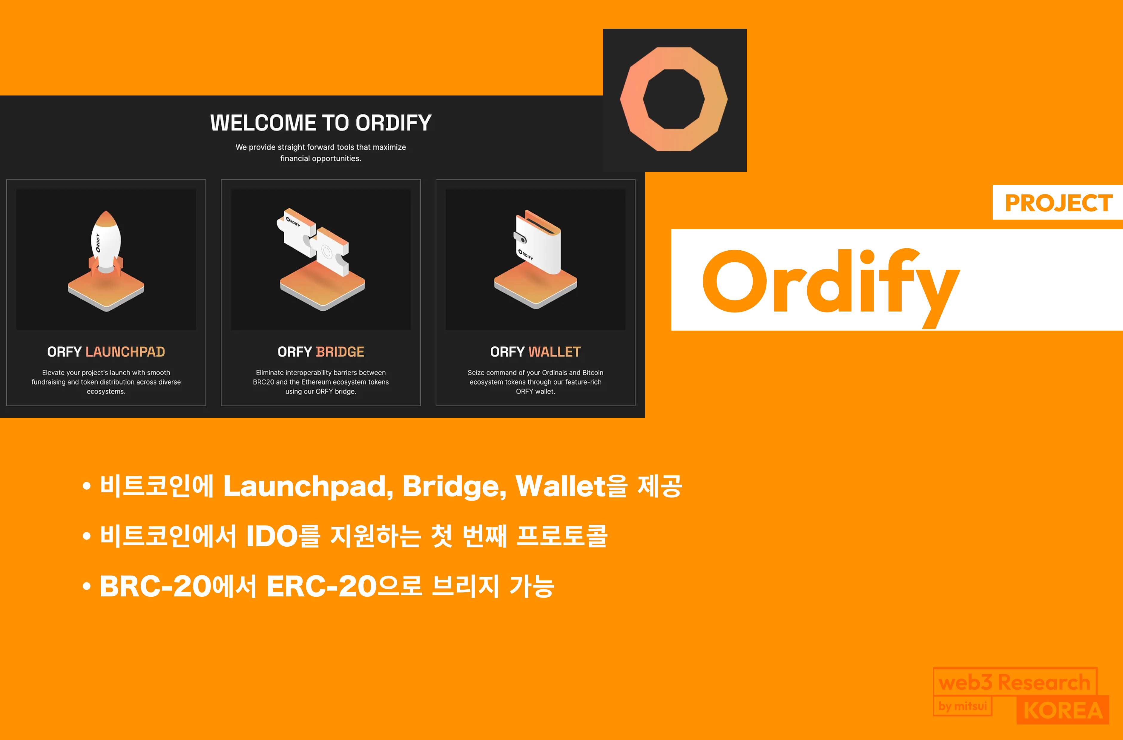 【Ordify】비트코인에 Launchpad, Bridge, Wallet을 제공 / 비트코인에서 IDO를 지원하는 첫 번째 프로토콜 / BRC-20에서 ERC-20으로 브리지 가능 / @OrdifyWorld