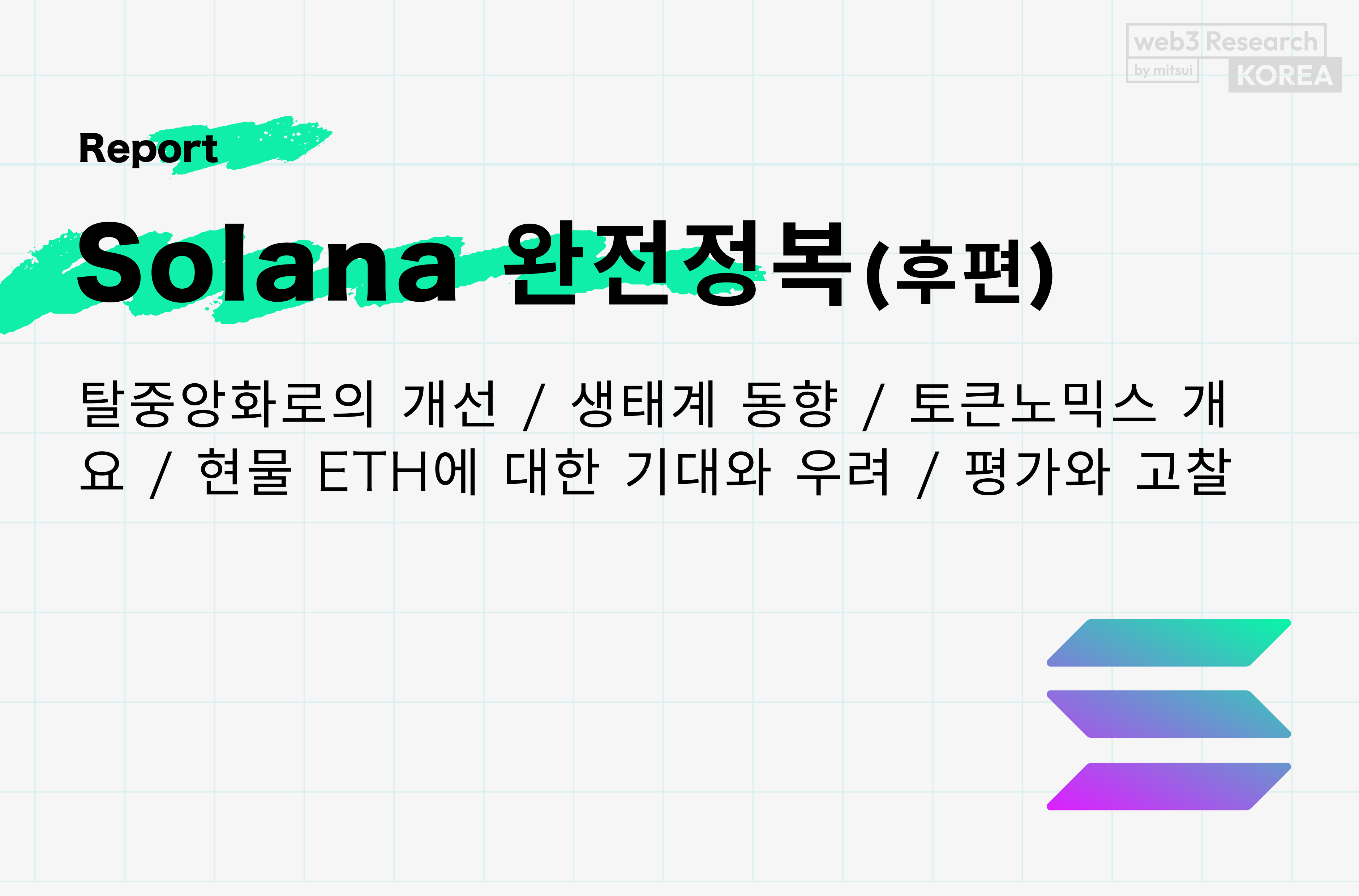 【Solana 완전정복(후편)】탈중앙화로의 개선 / 생태계 동향 / 토큰노믹스 개요 / 현물 ETH에 대한 기대와 우려 / 평가와 고찰 / @solana